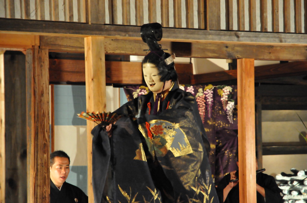 The temple’s stage is built on a cliff, about 13 meters (over 40 feet) above the ground. Noh and Kyōgen performed there were religious offerings, and unlike modern theatres, there was no audience seating — only the cliff below.